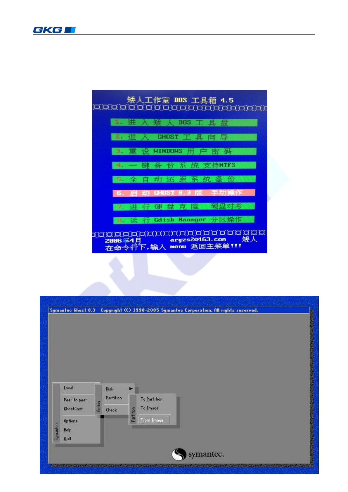 3、如图 2- 7 已经进入 DOS 系统,运行 GHOST 程序,选择 Local→Partition→From Image