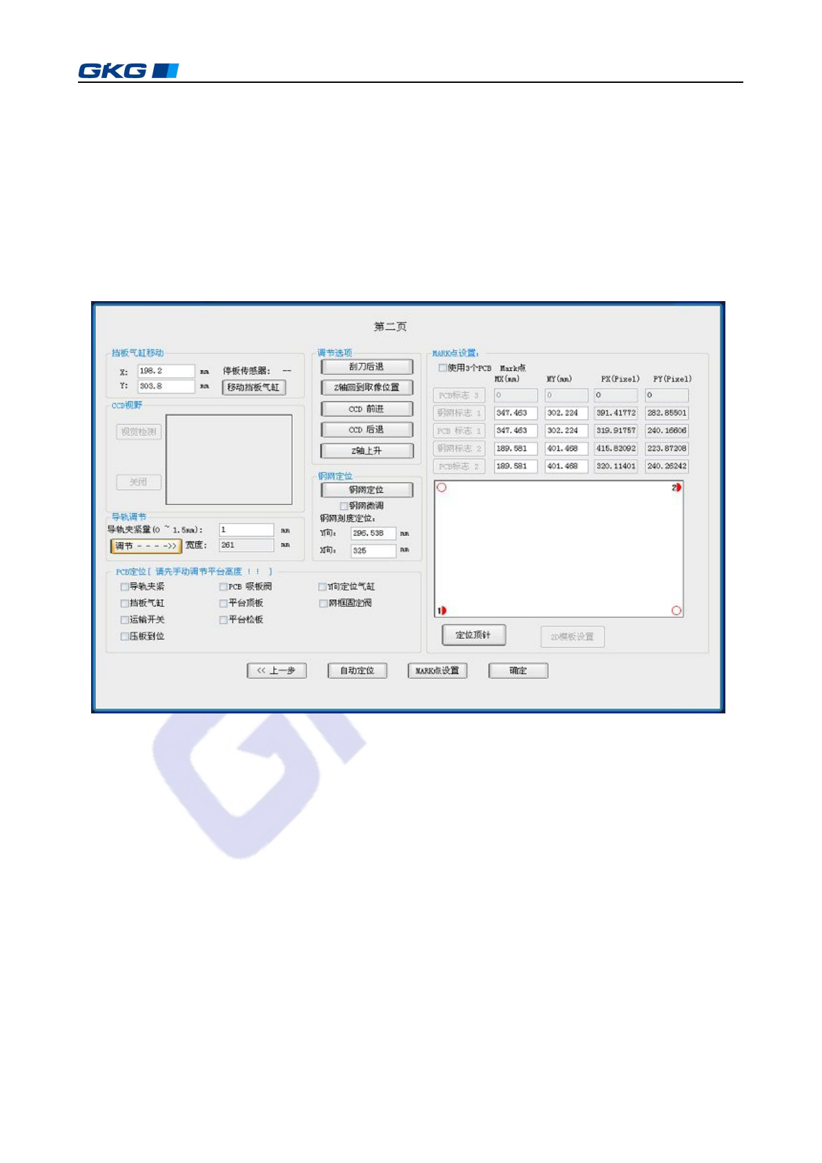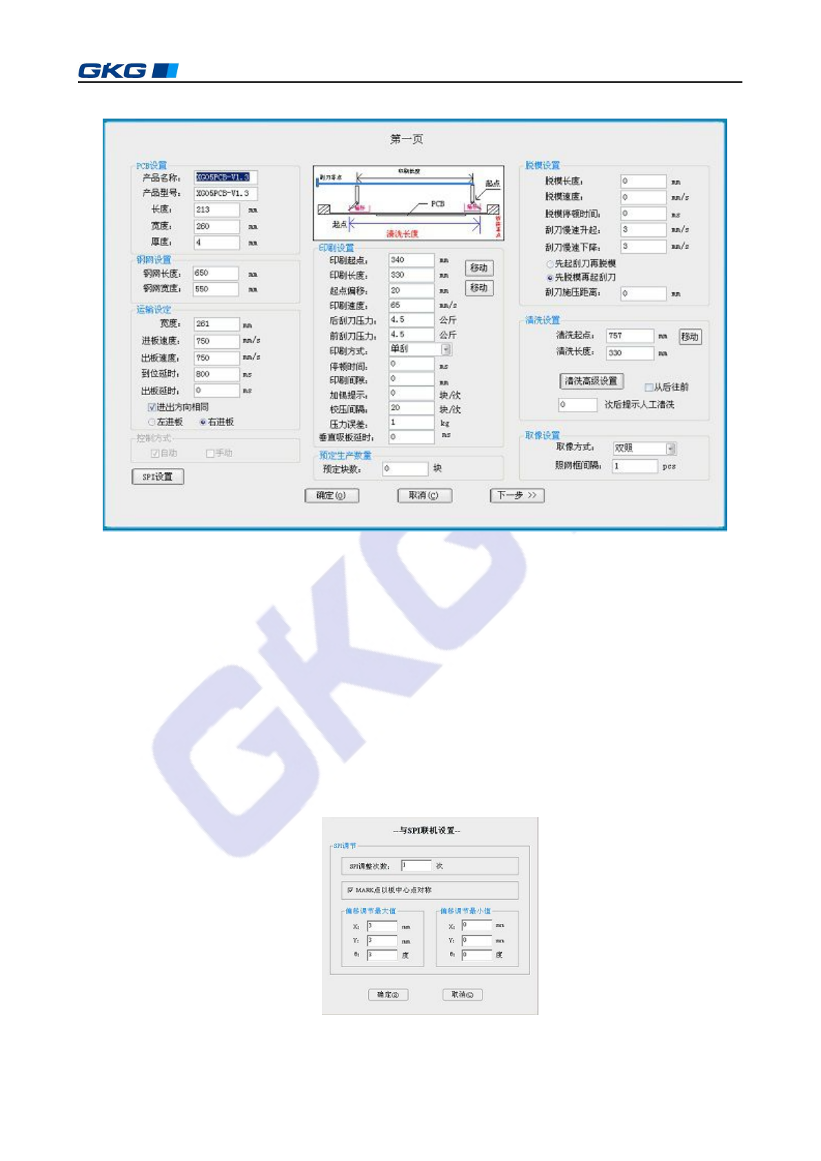 25 凯格精密机械有限公司 25 SPI 调整次数: 使用 SPI 联机功能, 当设置值大于 1 时, 自动调整 SPI , 等于 0 时不调整。 Mark 点以板中心对称默认勾选。 偏移调节最大、 最小值设置: 正常生产时, 超出该范围机器报警提示, 停止生产。 印刷 设 置栏 : 印刷 起点 、 印刷 长度 数 值由 软 件自 动 生成 , 用户 也可 以 根据 生 产的 实际情 况进行 修改 ( 注: 印刷 起点必…