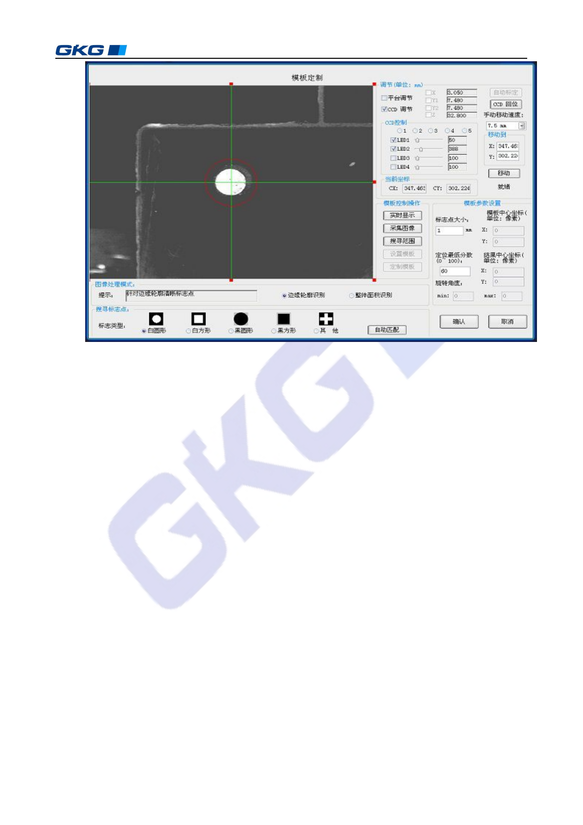 图像处理模式:有两种处理模式,一种针对边缘轮廓清晰的 Mark 点,另外一种是