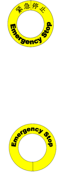 Panneau d'avertissement sur le bouton d'ARRÊT D'URGENCE.