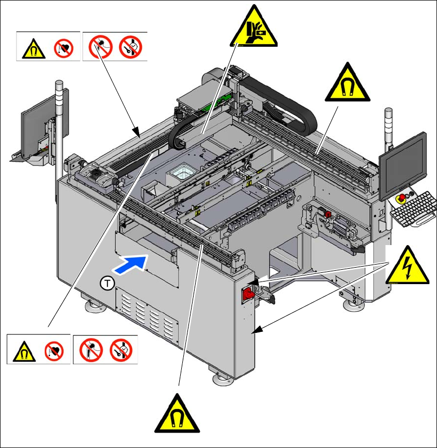 Manuel d'utilisation E by SIPLACE 2 Sécurité de fonctionnement À partir de la version logiciel SC 712.1 Édition 05/2019 2.2 Pann eaux d'avertissement 51 Fig. 2.2 - 6 Panneaux d'avertissement dans l'au…