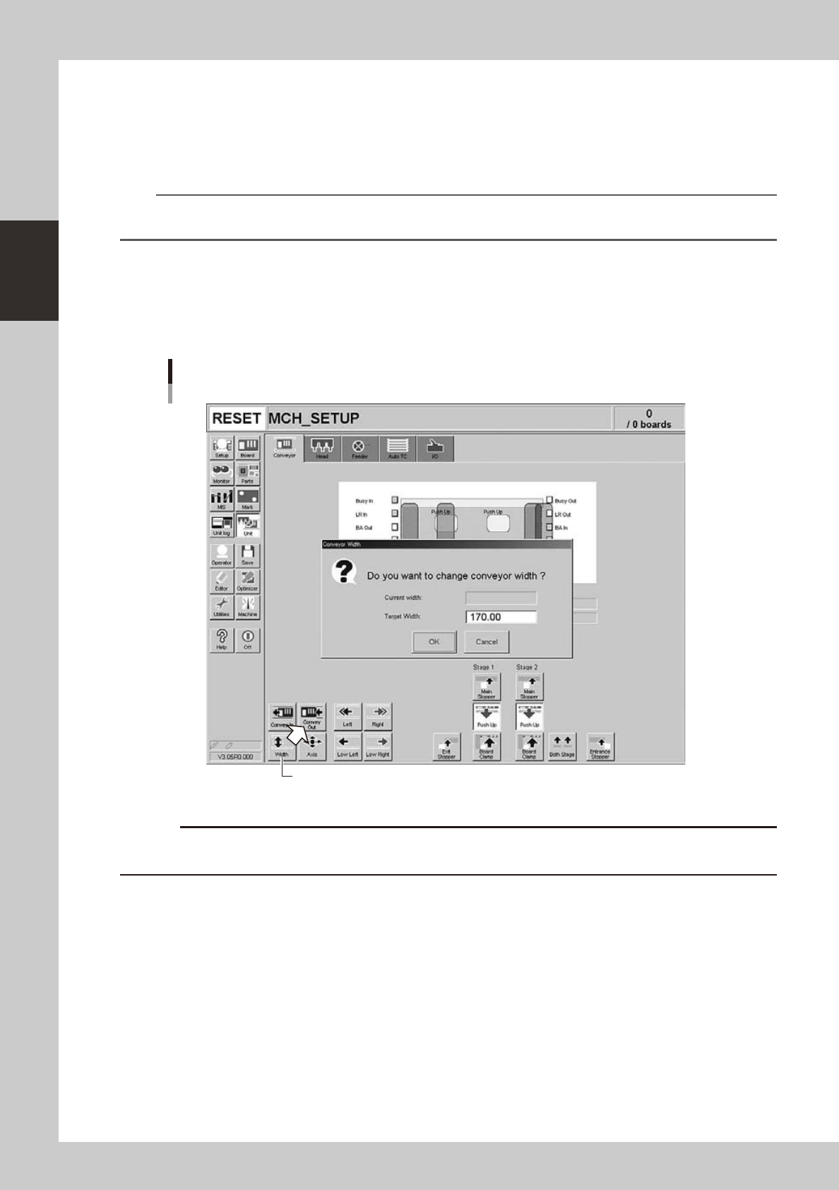 The "Conveyor Width" dialog box appears. Check the conveyor width (units: mm) and press the [OK]