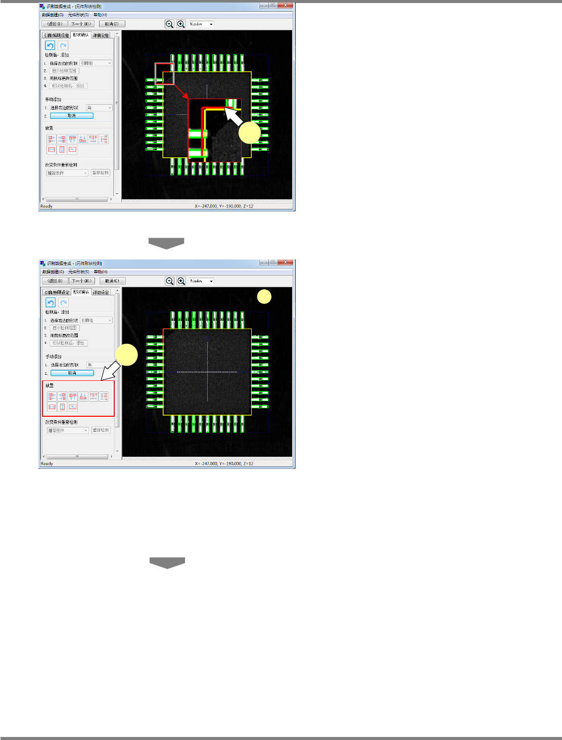 在进入到本操作画面时,即已自动测量了元件的模具或电极等形状。当发现错误时,可通过