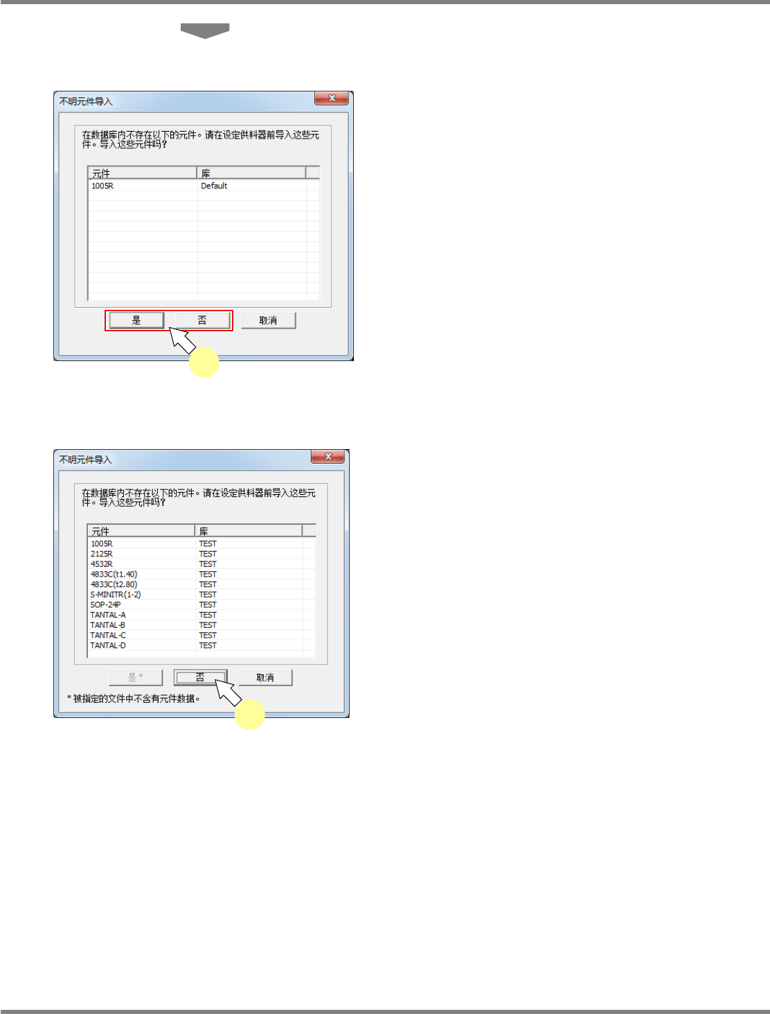 。请在导入后将元件登录进元件库。