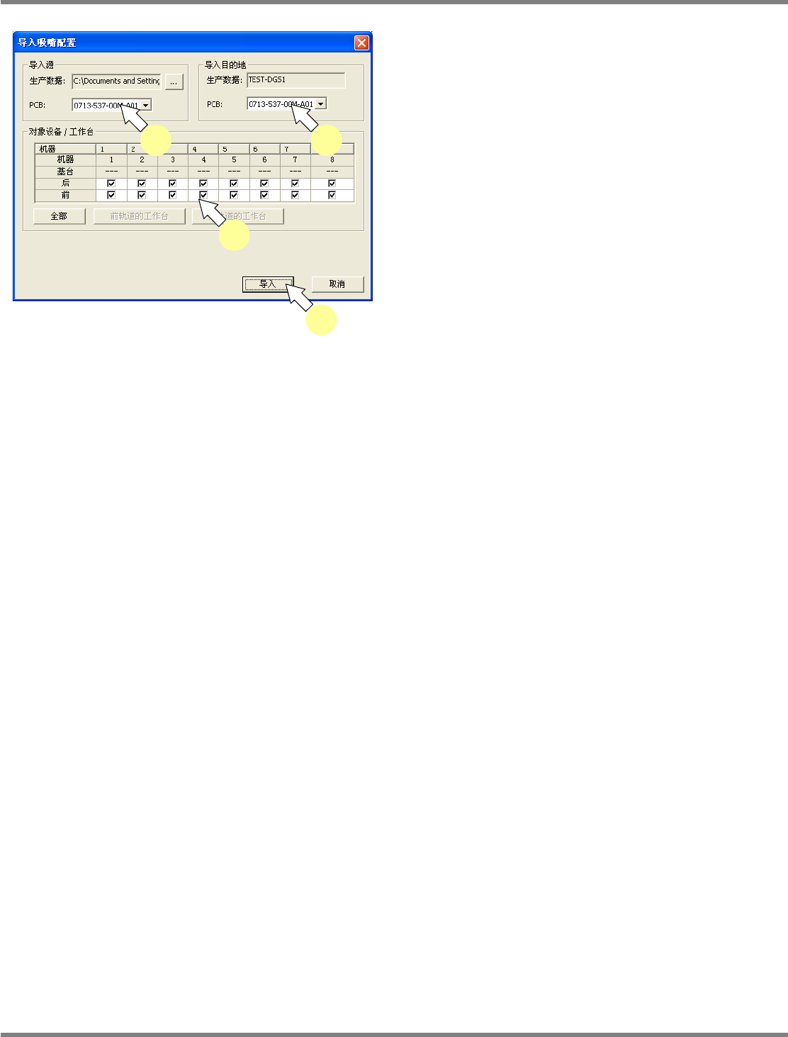 指定吸嘴配置导入目的地的