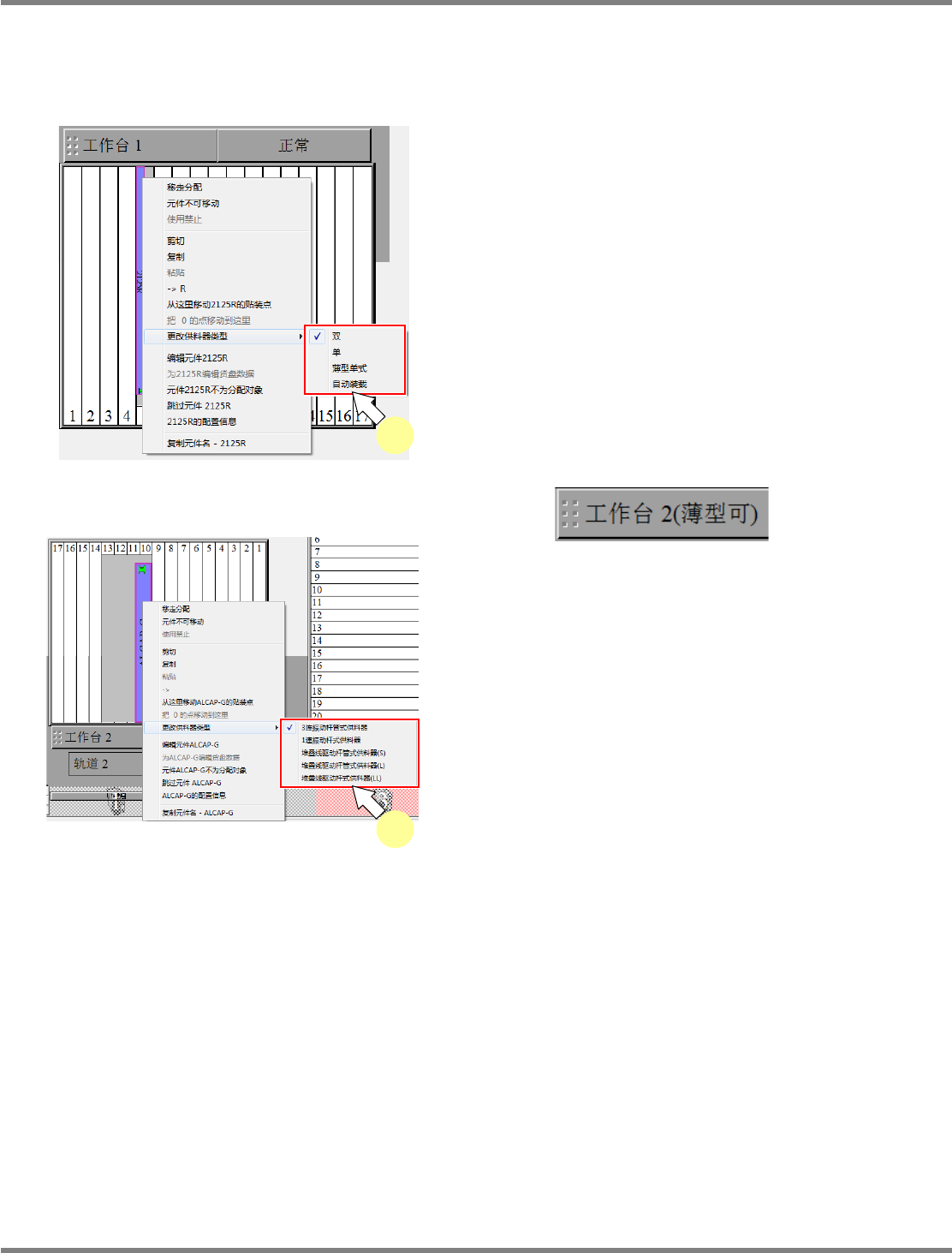 在想要更改供料器类型的元件上右击,