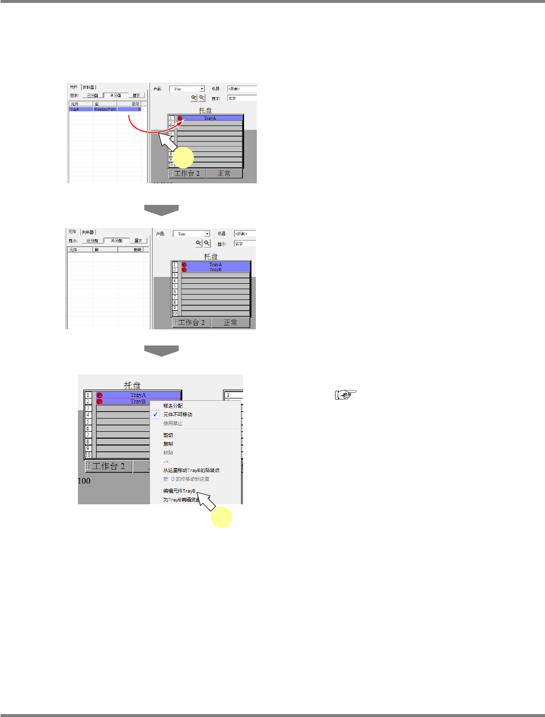 对配置了元件的托盘板数据进行编辑。