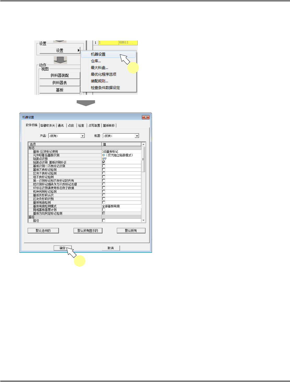 画面设定机器选项。