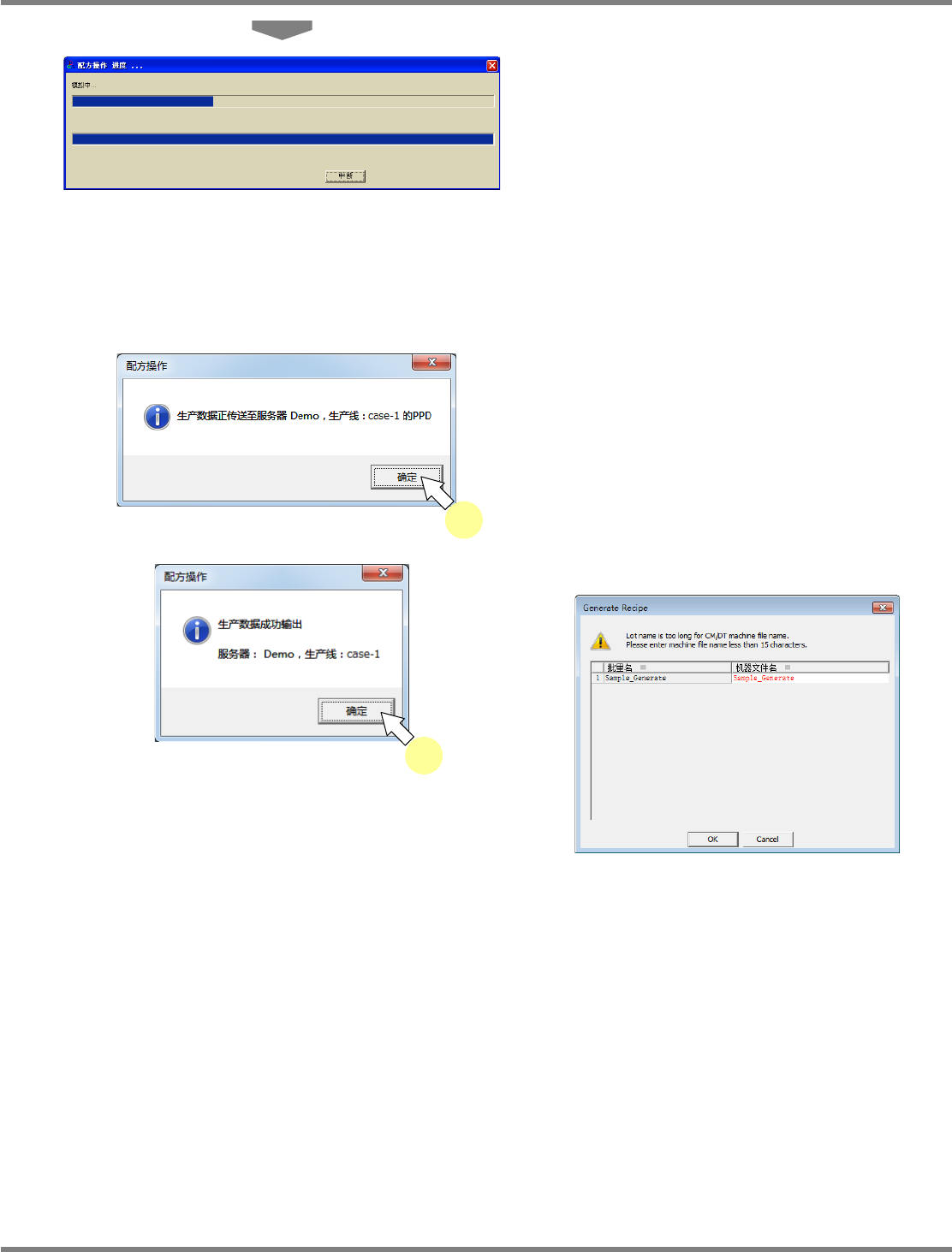 不分割输出生产数据时,将显示错误对话框。