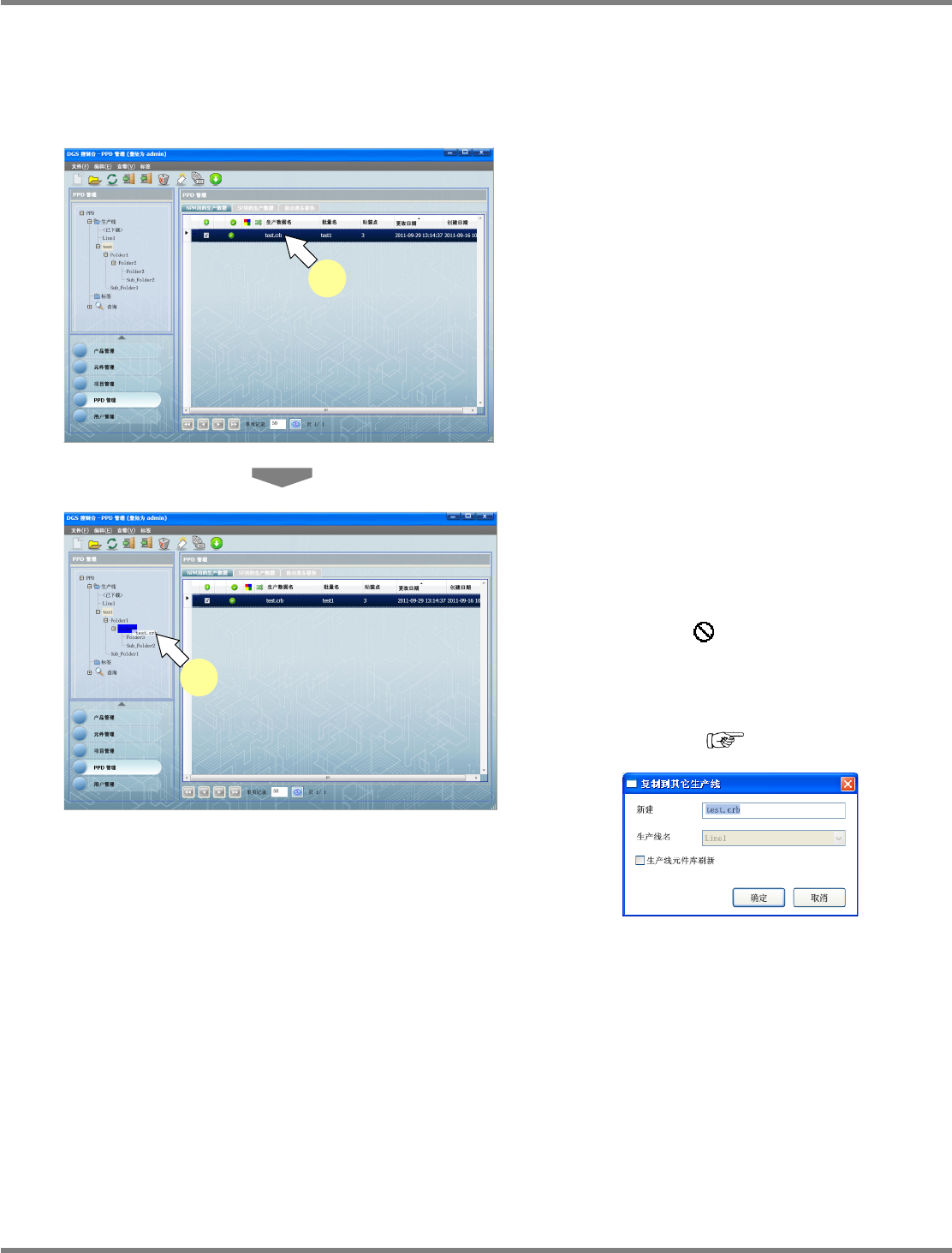 通过拖放,可移动生产数据、文件夹。
