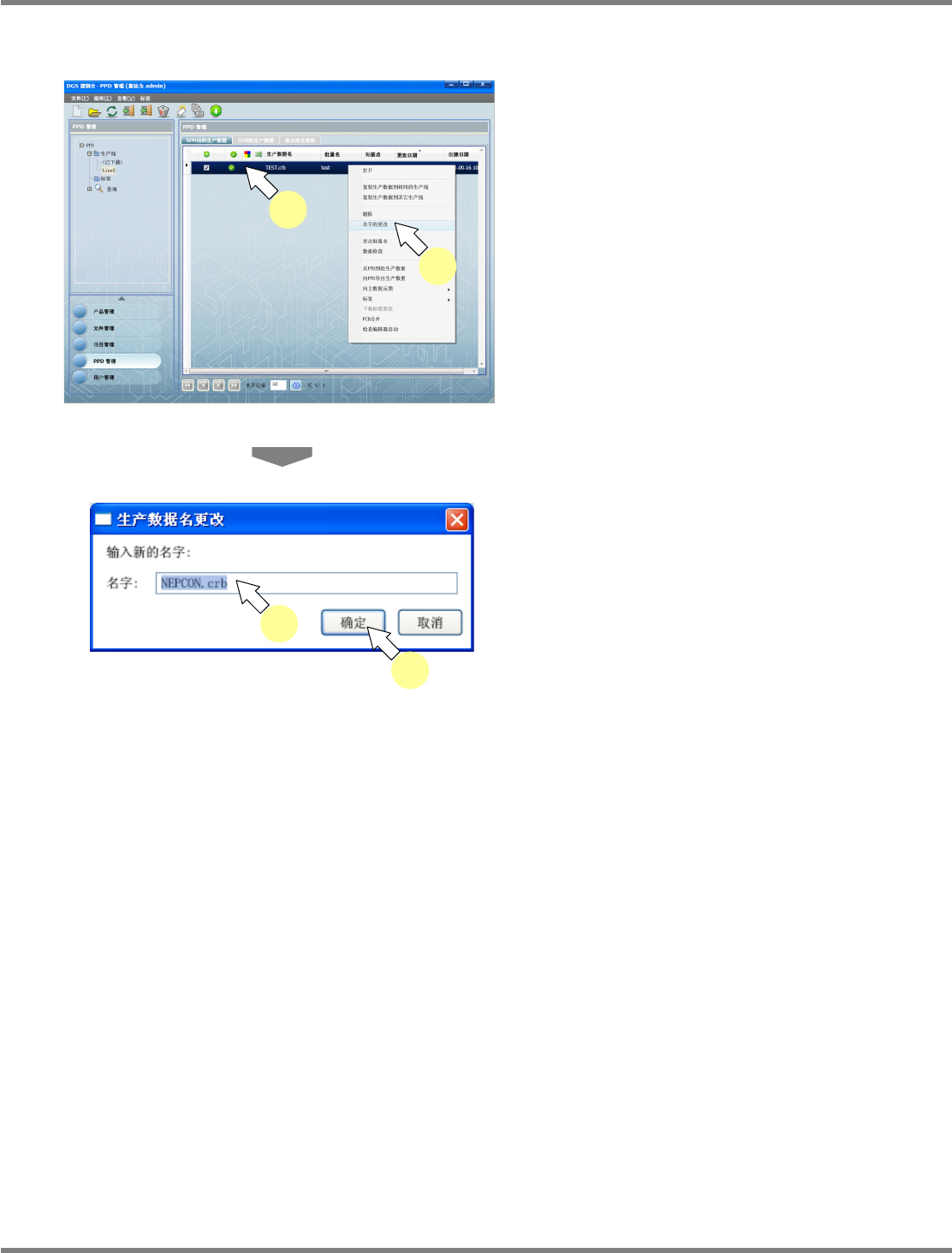 NPM-DGS 程序手册 9.2 关于 PPD 管理画面 Page 9-14 EJS9AC-MB-09P-20 9.2.8 变更生产数据的批量名 1 选择需要变更批量名的生产数据。 2 在所选择的生产数据上右击后, 选择右 击菜单的 [ 变更批量名 ] 。 显示出 < 更改批量名 > 画面。 3 输入批量名。 不能使用以下文字 : % , ” 空格 \ : ; / . < > ? * | 全角文字 批…