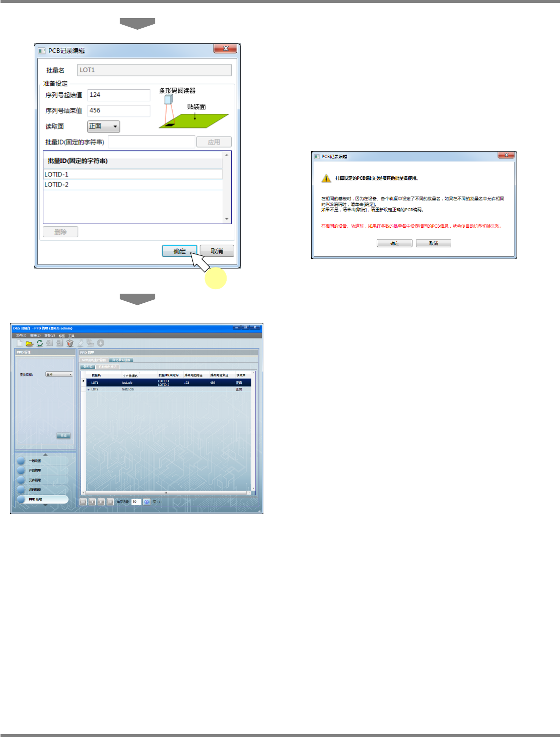 使用这项通过条形码来自动准备转换的功能,需要在基板上设定基板条形码。