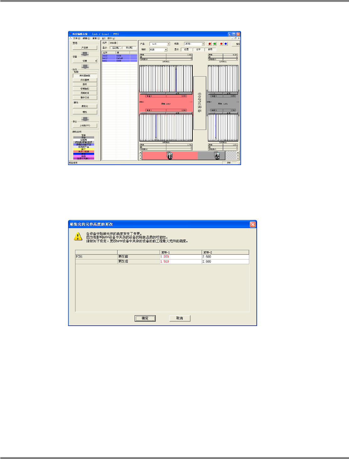 NPM-DGS 程序手册 9.4 关于项目编辑系统画面 EJS9AC-MB-09P-20 Page 9-101 如果在生产线上混在不属于 NPM 和 NPM 的设备,即会在数据编辑器下将不属 于 NPM 的设备显 示为 ‘ 非 NPM 设备 ’ 。 如上图所示,在 NPM 中混在非 NPM 设备的生产线下,移动元件或编辑元件 高度时,需要注意非 NPM 设备的前工序的最大元件高度。 如果前侧 NPM 的元件高度高出了后侧 NPM 的元件…