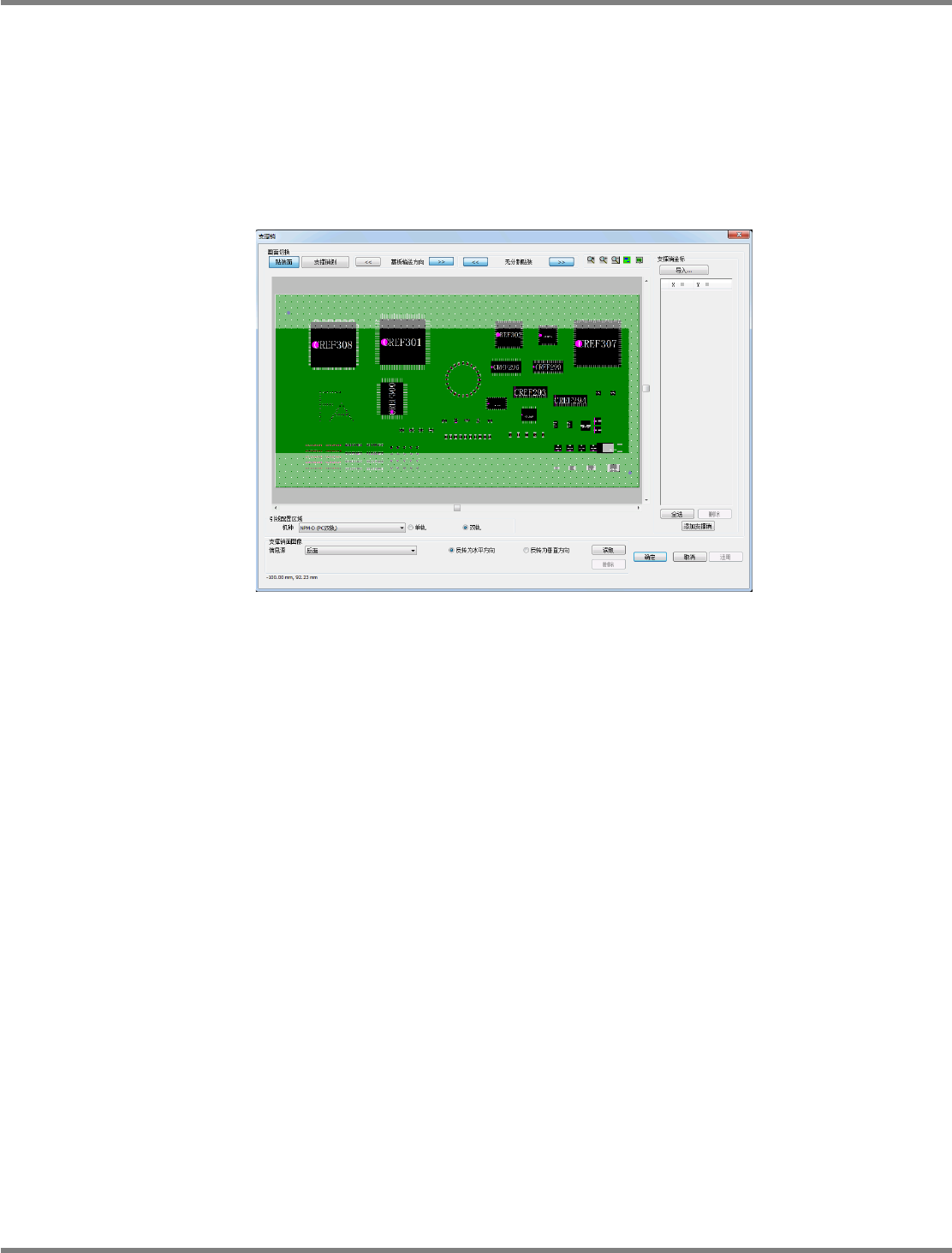 NPM-DGS 程序手册 13.2 支撑销配置数据的编制功能 EJS9AC-MB-13P-24 Page 13-13 13.2.2 功能 在 DGS 上编制支撑销的配置位置时,可 使用下述功能。 ① 可将支撑销面作为图像而读 取,并指定支撑销的配置位置。 ② 需要进行分割贴装的基板, 可在第 1 贴装位置、第 2 贴装位置下确认支撑销的配置 。 ③ 可指定机种或轨道类型,并 在确认可配置场所的同时指定支撑销 的位置。 ④ 可对每个设备设…