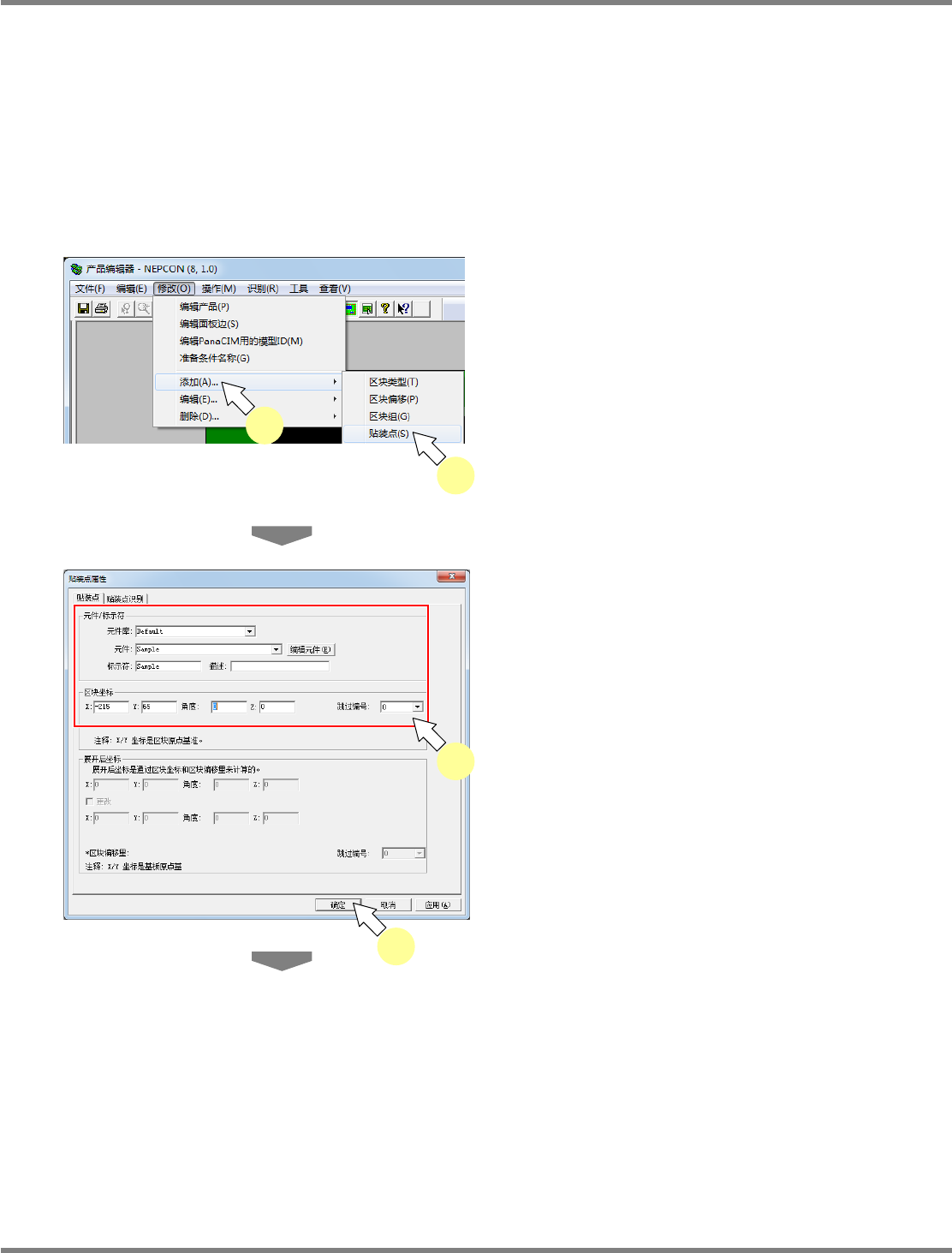 设定需要添加的贴装点坐标、参考编