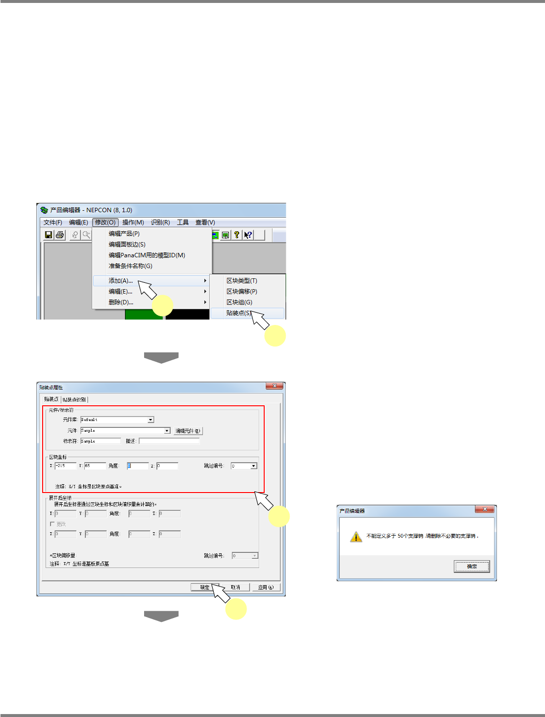 添加拥有支撑销数据的贴装点