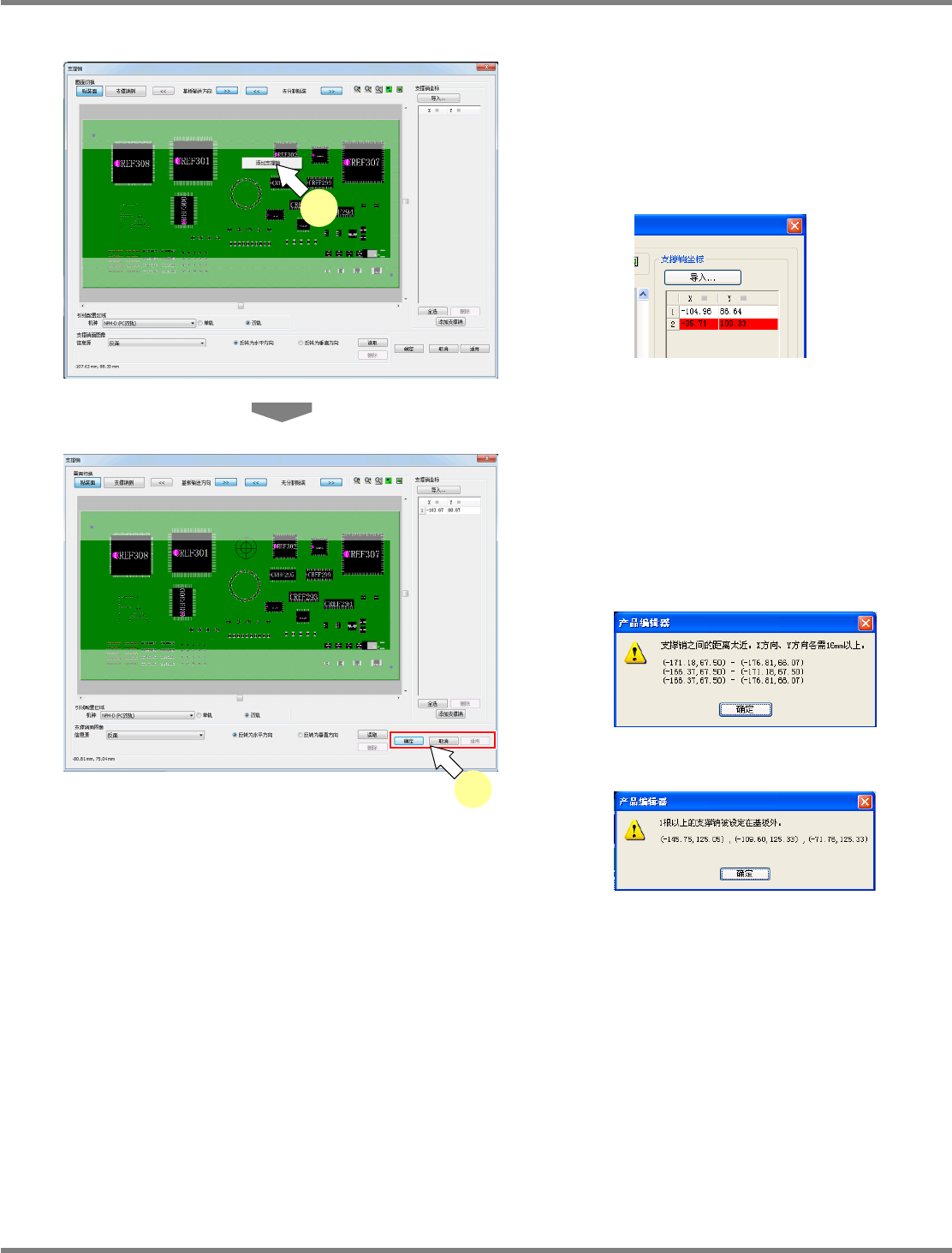 在添加贴装点时,将对支撑销的数据进行确认。