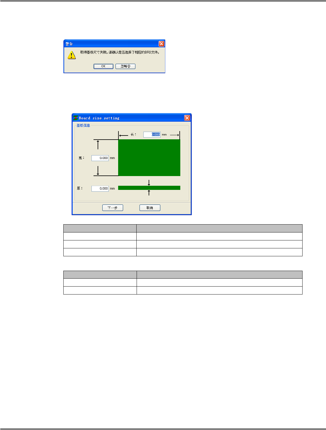 [下一步] 设定基板尺寸后进入到下一个画面。