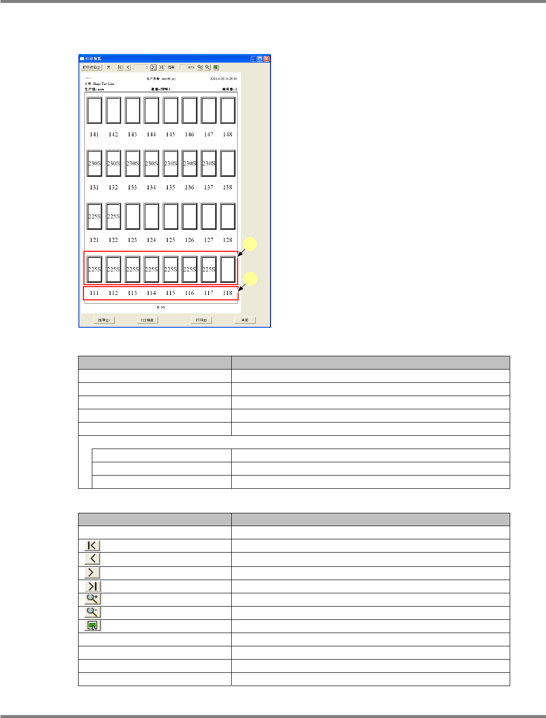 NPM-DGS 程序手册 7.2 项目编辑系统主画面 Page 7-58 EJS9AC-MB-07P-29 吸嘴的配置信息 吸嘴配置信息,将在向前翻滚供料器 配置信息或者分配对象外信 息 ( 只在存在设定为分配对象外元 件时 ) 页面时显示。 显示项目 项目 说明 ‘ 页 ’ 显示帐票的页码。 ‘ 倍率 显示打印预览的显示倍率。 ‘ 生产数据 ’ 显示制作数据的项目名称。 ‘ 生产线 ’ 显示生产线名称。 ‘ 设备 ’ 显示设备…