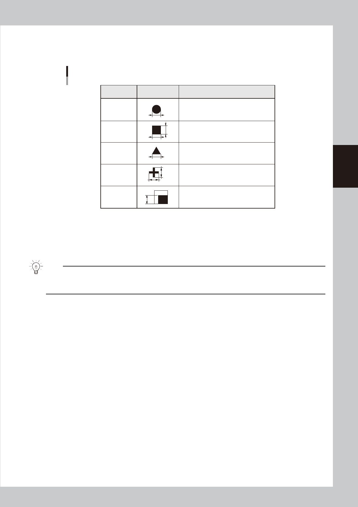 输入标记的外形尺寸。参照下表输入用直尺等测得的准确数值。基本参数的“标记类型”设置为“坏板标记”时,