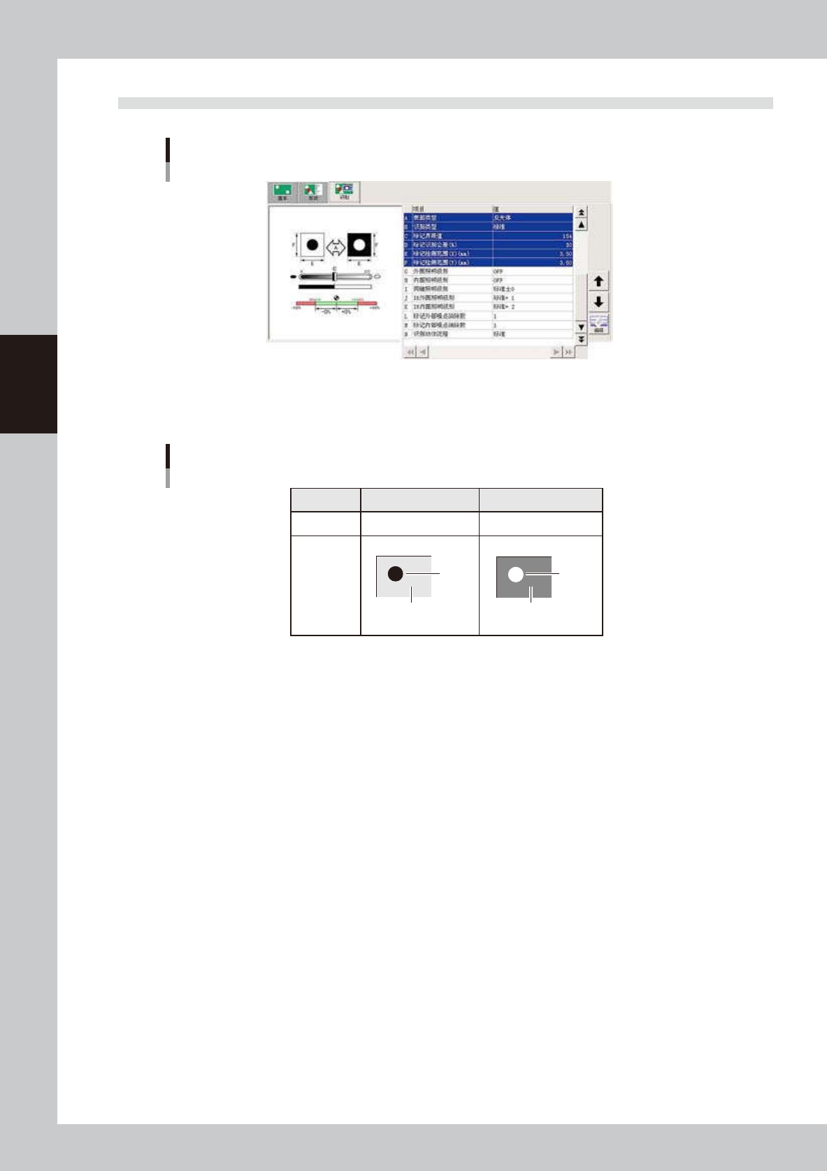 参考下表设置标记表面与基板 ( 标记周围 ) 的明暗关系。