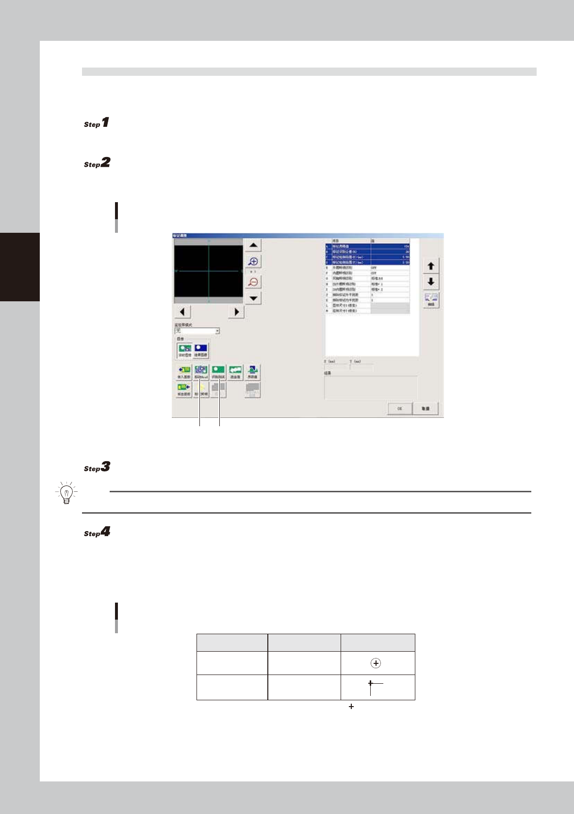 标记调整是确认所设置的参数是否适当的作业。未设置的参数则通过识别测试获取最佳值。