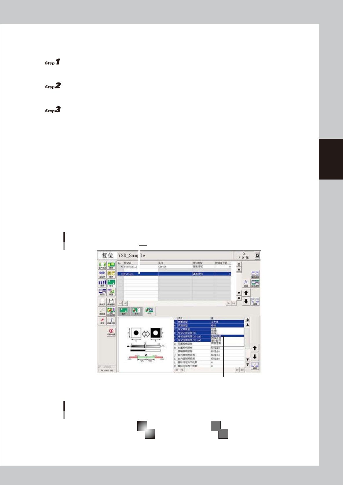 3-65 3 基 板 程 序 的 创 建 5 . 6 . 1 登 录 的 图 样 下 面 , 介 绍 将 图 样 匹 配 用 的 图 样 作 为 模 板 进 行 登 录 的 方 法 。 决 定 图 样 匹 配 用 的 图 样 。 参 照 前 页 所 述 的 图 样 的 条 件 决 定 。 在 标 记 信 息 中 输 入 图 样 的 名 称 。 打 开 标 记 画 面 , 在 画 面 上 部 表 格 中 “ 标 记 名 ” 栏 输 入…