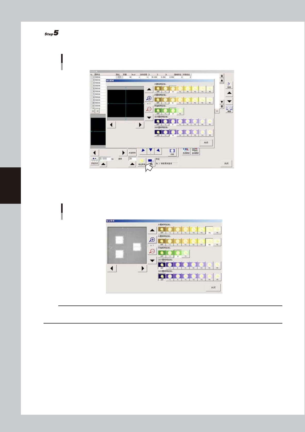 4-8 4 有 效 利 用 各 种 功 能 调 节 标 记 照 明 。 如 果 监 控 屏 上 没 有 显 示 目 标 物 时 , 按 [ 标 记 照 明 ] 按 钮 , 调 节 照 明 级 别 。 打开“标记照明”画面 66 40 8 -N 7- 00 外 圈 照 明 级 别 与 内 圈 照 明 级 别 为 O F F 或 0 时 , 改 为 + 4 , 确 认 监 控 屏 上 的 目 标 物 或 标 记 。 同 轴 照 明 设 …