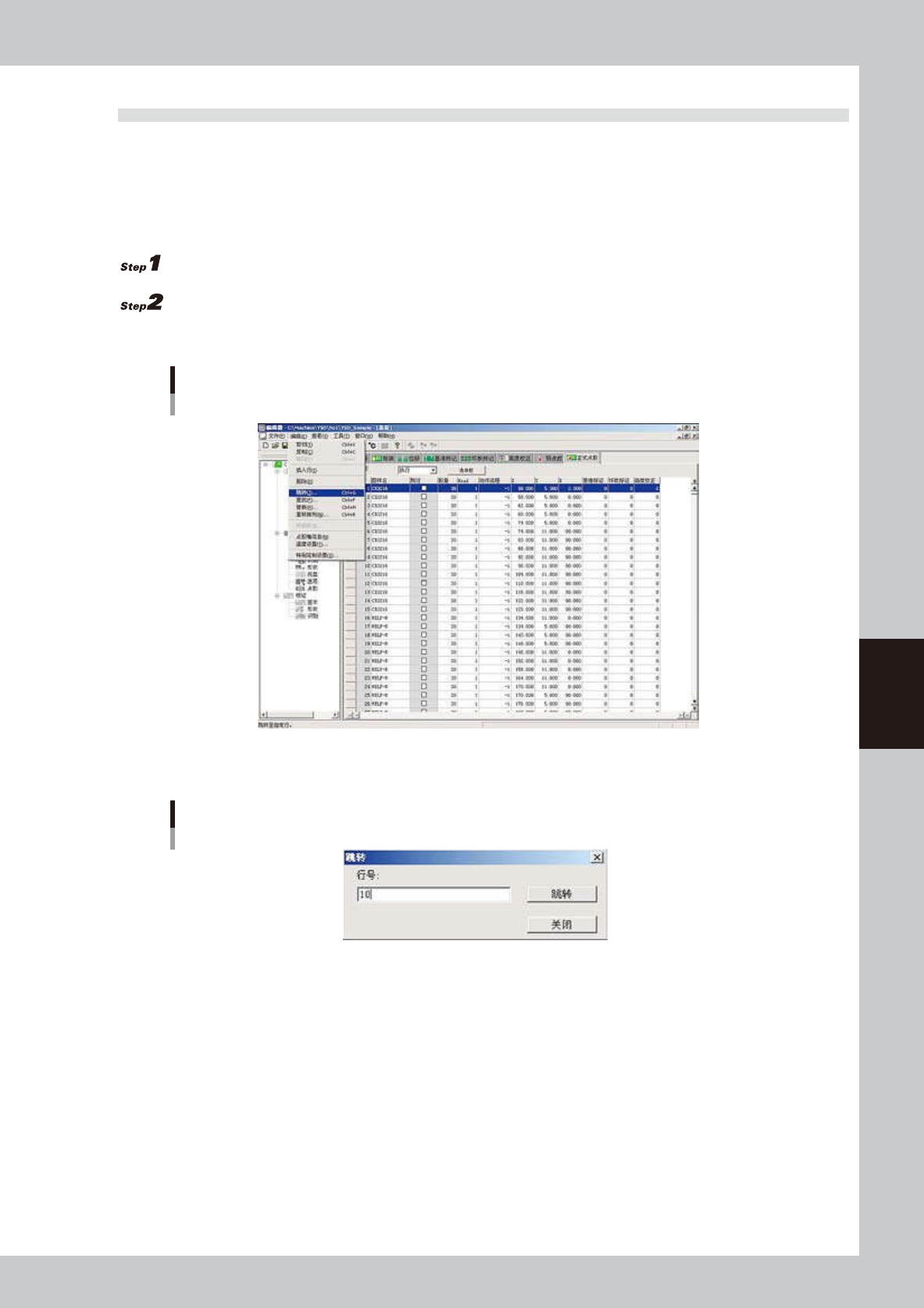 5-5 5 基 板 程 序 的 编 辑 1 . 3 跳 转 功 能 在 主 视 图 中 , 可 以 使 光 标 快 速 跳 转 到 首 行 、 末 行 或 指 定 的 行 。 该 功 能 可 以 在 贴 装 信 息 、 元 件 信 息 、 标 记 信 息 、 位 移 、 基 准 标 记 、 坏 板 标 记 、 高 度 校 正 、 点 胶 位 置 校 正 、 预 点 胶 、 正 式 点 胶 的 主 视 图 中 使 用 。 1 . 3 …