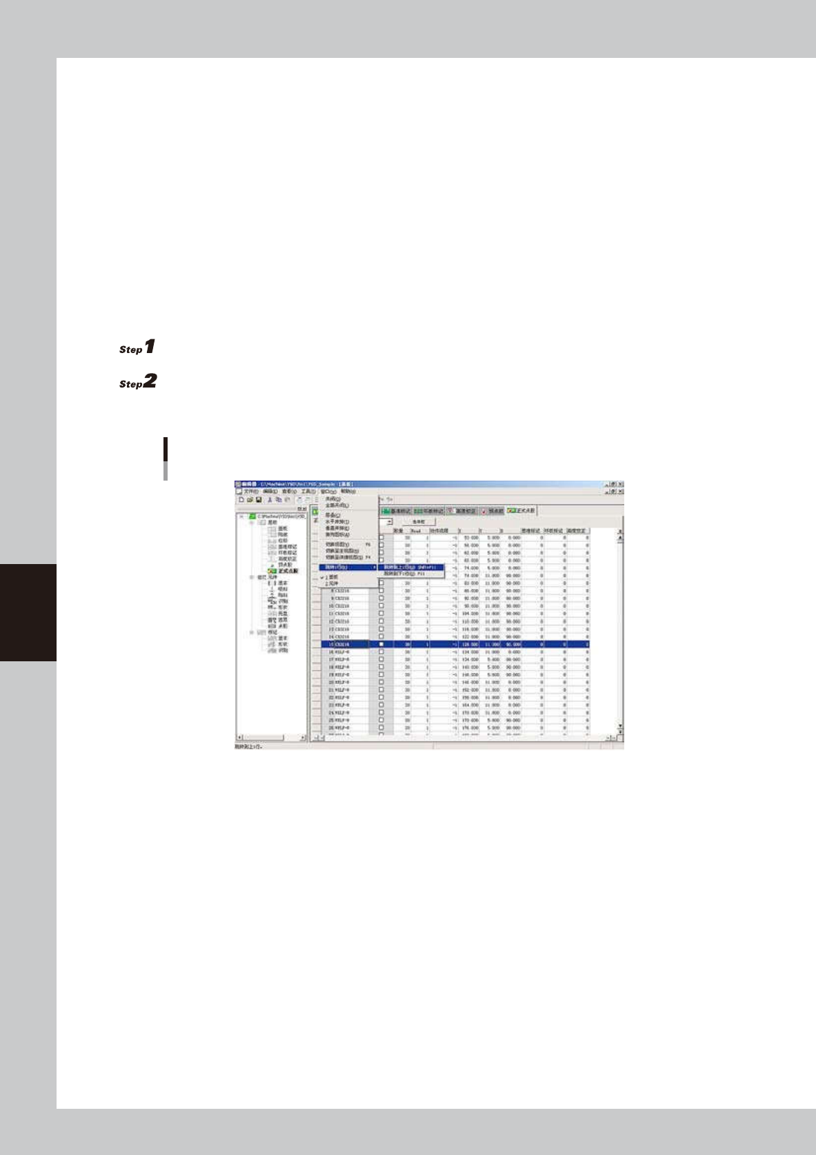 5-7 5 基 板 程 序 的 编 辑 1 . 4  数 据 的 复 制 、 粘 贴 编 辑 器 可 以 以 行 为 单 位 复 制 、 粘 贴 数 据 。 选 择 想 要 复 制 的 数 据 行 。 1 .  点 击 想 要 复 制 的 首 行 行 首 , 整 行 变 为 反 色 显 示 。 2 .  按 住 [ S h if t ] 键 的 同 时点 击 想 要 复 制 的 最 终 行 , 2 行 之 间 的 所 有 行 都 …
