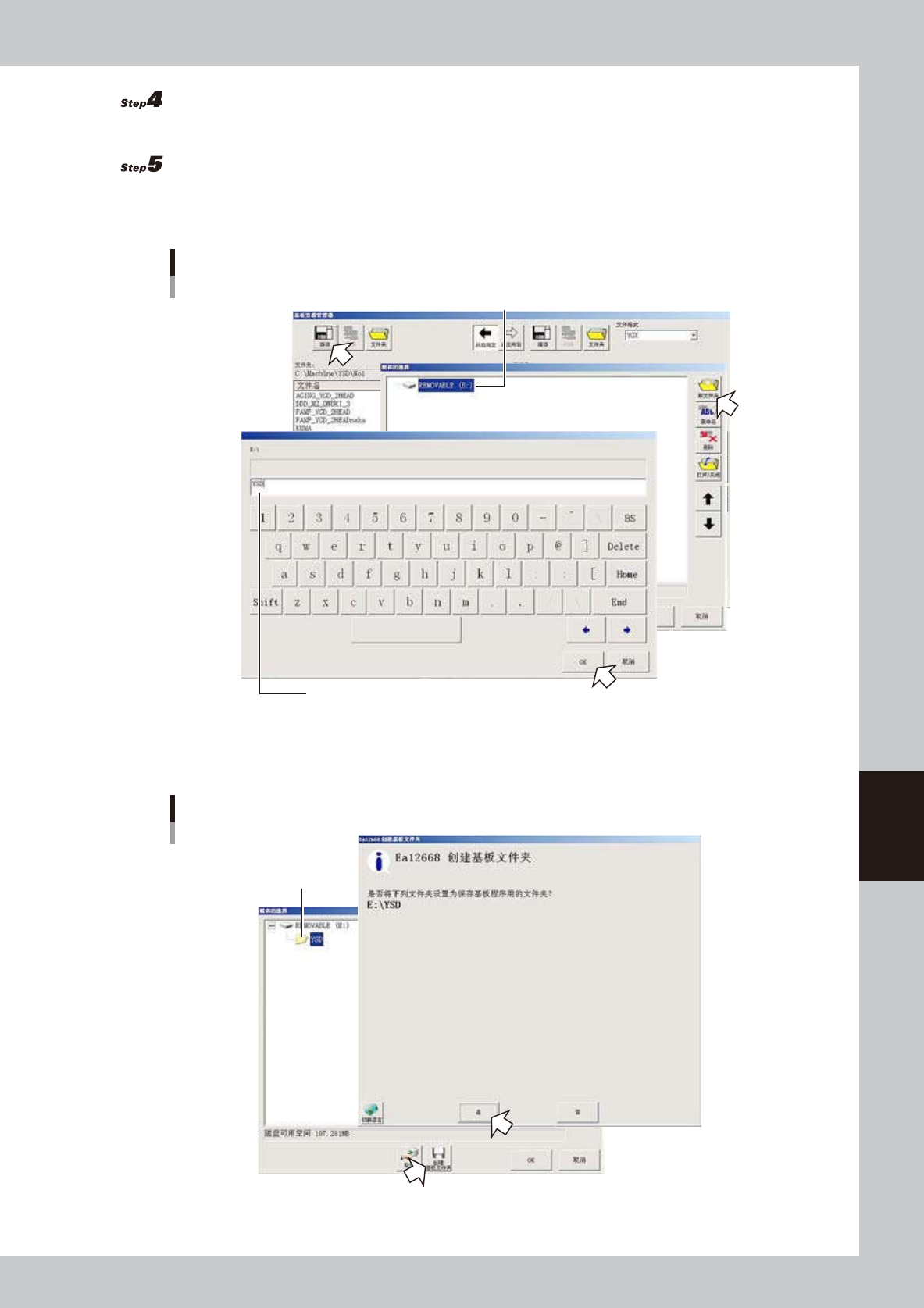 6-4 6 数 据 的 管 理 4 . 退 回 基 板 资 源 管 理 画 面 后 , 确 认 “ 文 件 夹 ” 显 示 框 中 是 否 已 创 建 N o . 1 目 录 。 目录的确认 确认已创建No.1目录 66 60 3 -N 7- 00 选 择 文 件 格 式 。 从 下 拉 框 中 选 择 。 选 择 想 要 备 份 的 基 板 程 序 。 用 光 标 选 择 想 要 备 份 的 基 板 程 序 。 按 住 [ C t…