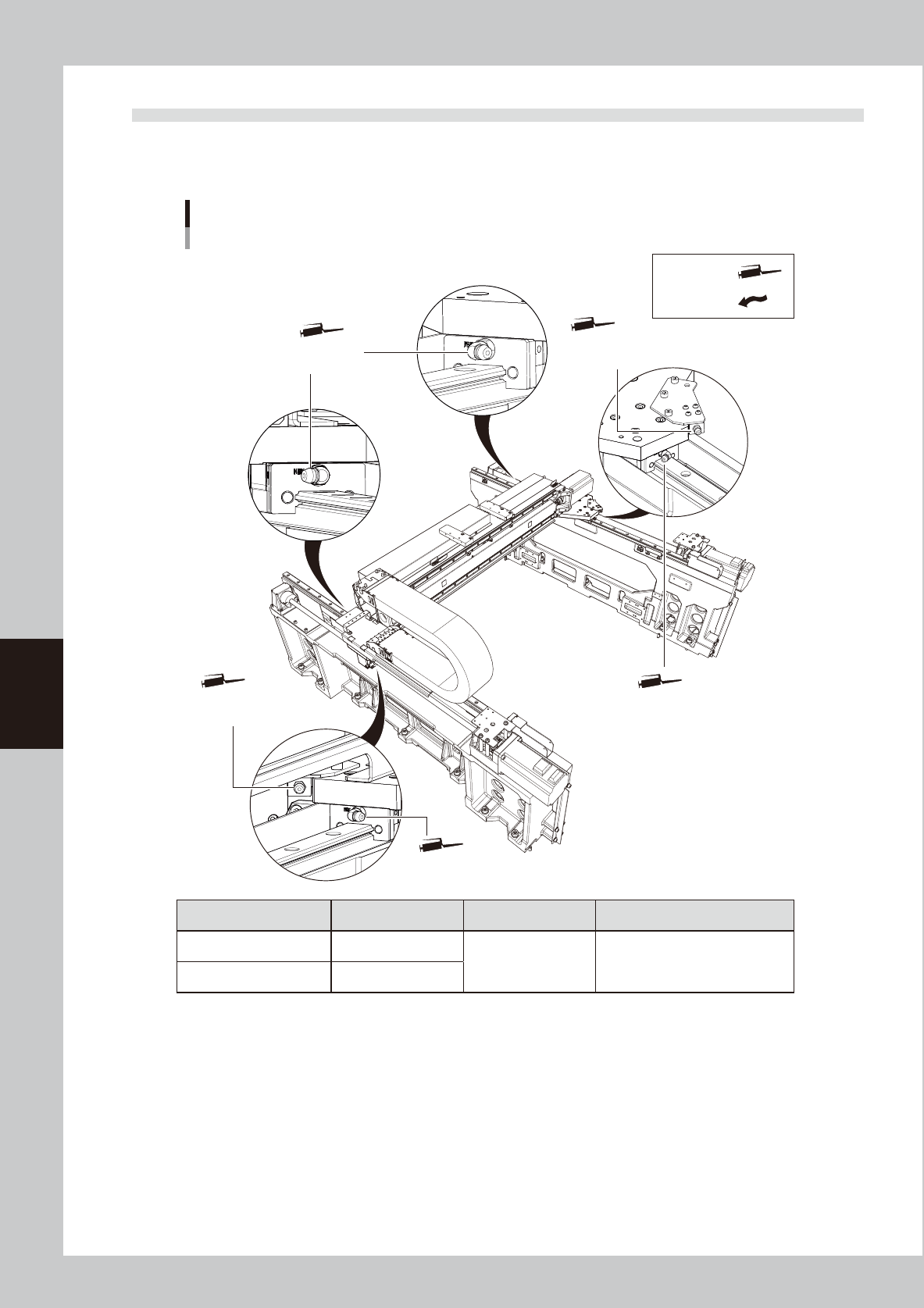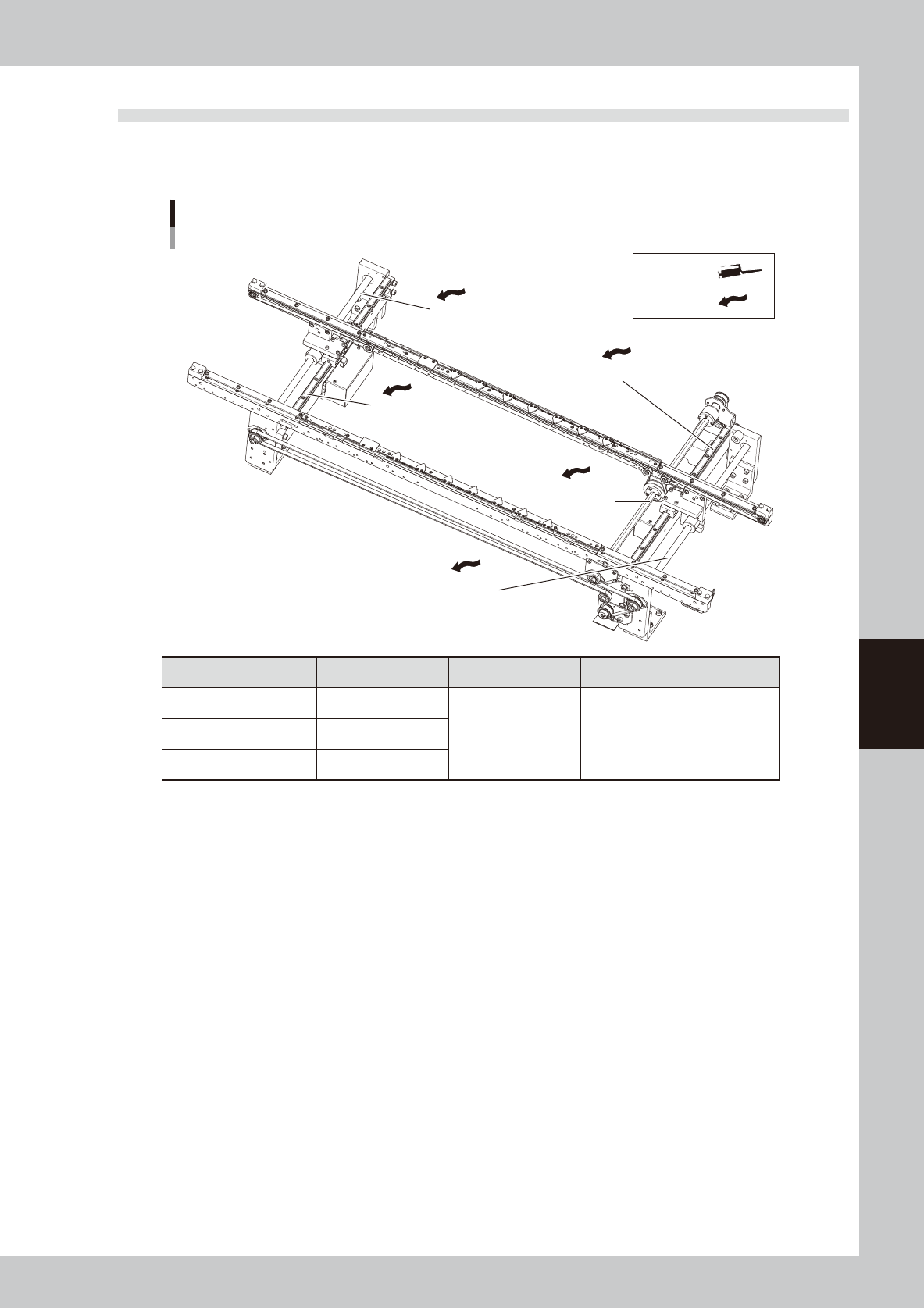 5-5 5 加 油 位 置 一 览 2 . 4 基 板 传 送 部 2 . 4 . 1 W 轴 导 轨 与 滚 珠 丝 杆 W轴的加油位置 W轴导轨 W轴导轨 W轴 滚珠丝杆 W轴 6角花键轴 润滑油枪: 用手涂抹: W轴 滚珠丝杆 加 油 部 位 加 油 位 置 频 率 加 油 方 法 导 轨 2 1 次 / 月 用手 涂 抹 滚 珠 丝 杆 2 6 角 花 键 轴 1 5 550 4 -N 7- 00