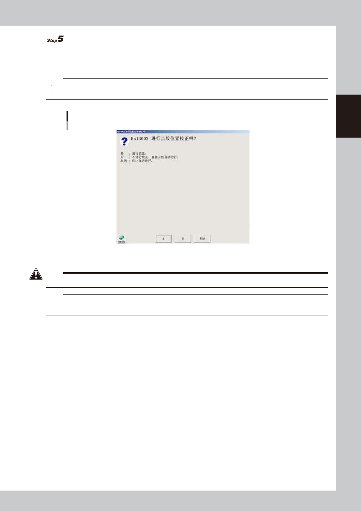 接通电源后直接开始生产时,会自动进行点胶位置校正,不会显示确认对话框。