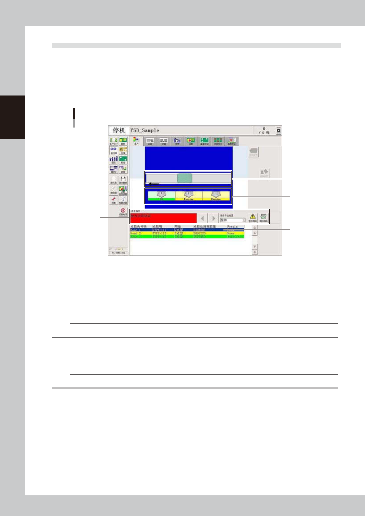 点胶机发生整体错误时,整个区域的背景以蓝色显示。