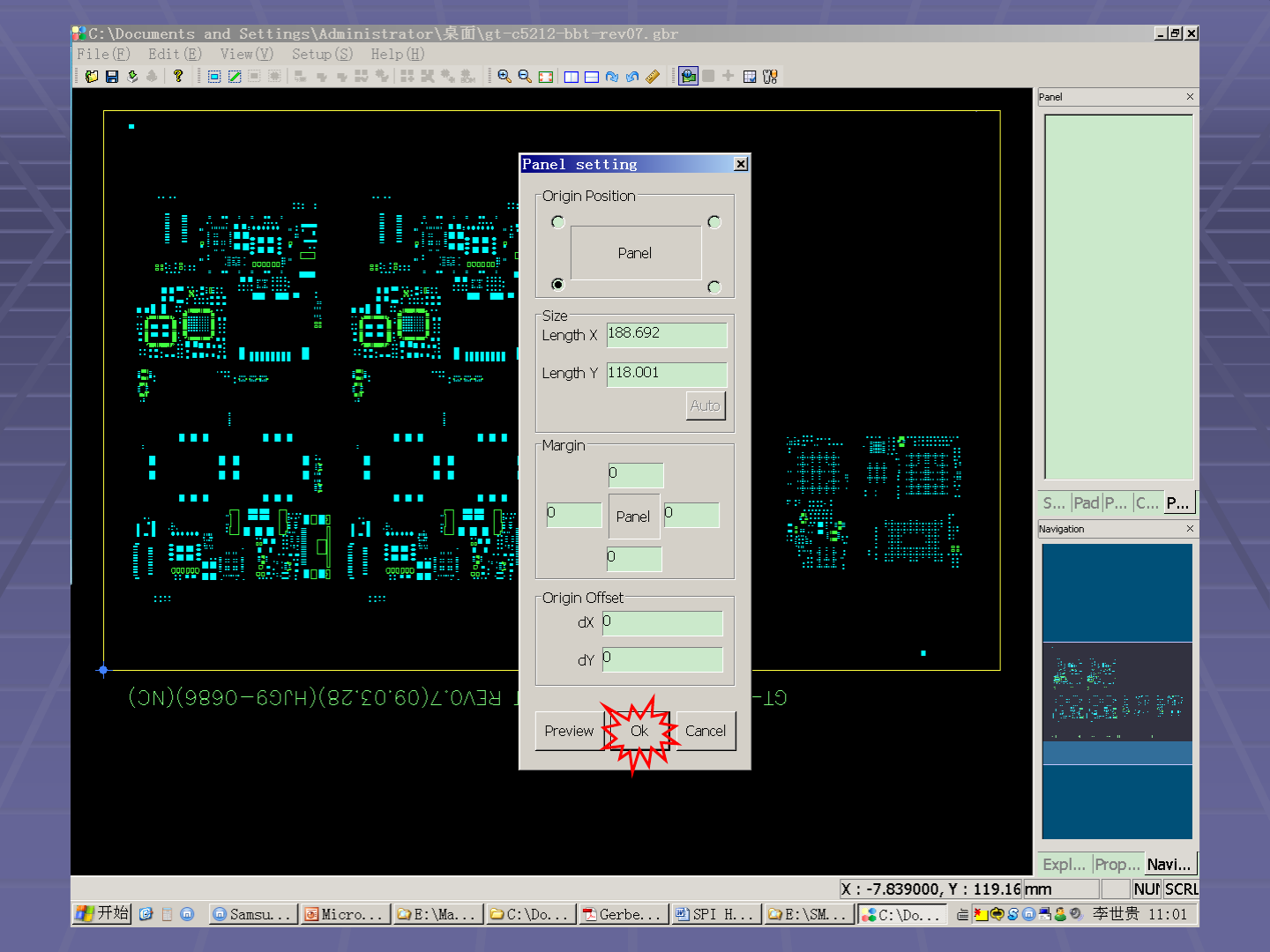 5 、定义 Array 大小 -同 x| 田 (3 Panel Expl... |Prop.. Navi... | Add Array X : 128.526000, Y : 122/ mm Nur SCRL r>C: \Documents and Sett ings\Administrator\^ffi\gt-c5212-bbt-rev07. gbr 遍 FMUIM 加 非:: :3::: Innin Innin 岸词 q °E…