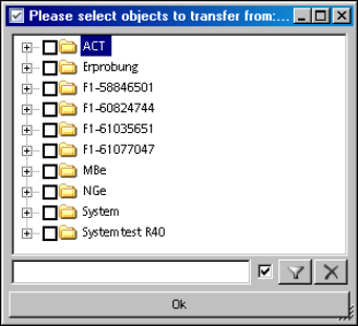 menu allow the relevant objects to be selected quickly. The checked entries are added to the