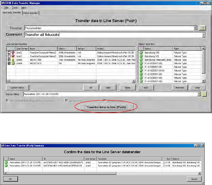After the Transfer data to line (Push) button is pressed, the selected data is exported from