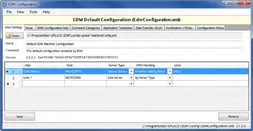 The EDM Configuration Manager provides the functionality to define and change configuration sets