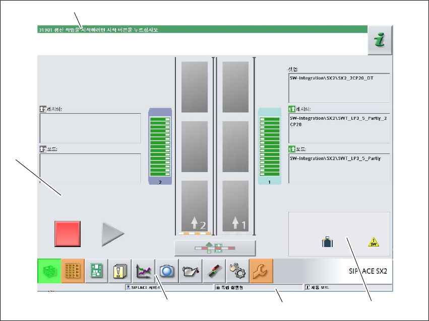 그림 5.5 - 1 " 생산 " 보기에서의 사용자 인터페이스 컴포넌트 (SIPLACE SX 의 예가 표시 )