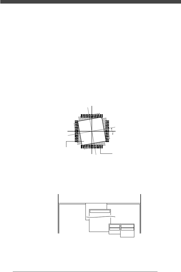 QFP が反時計回りにズレている場合:+ 値の傾き