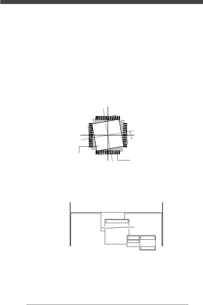 QFP の四隅に注目して、ランドパターンとの傾き角度を求めてください。