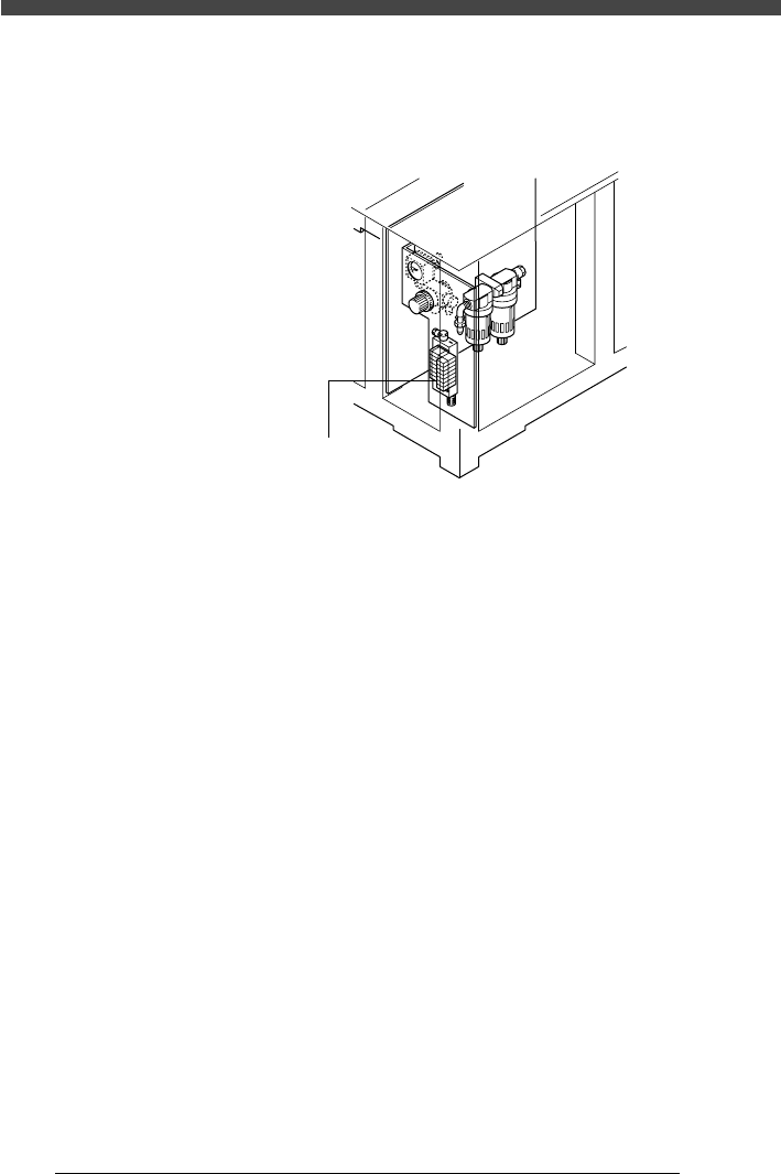 コンベアユニット各機構のエア駆動バルブは、本体背面の右下パネルを開ける
