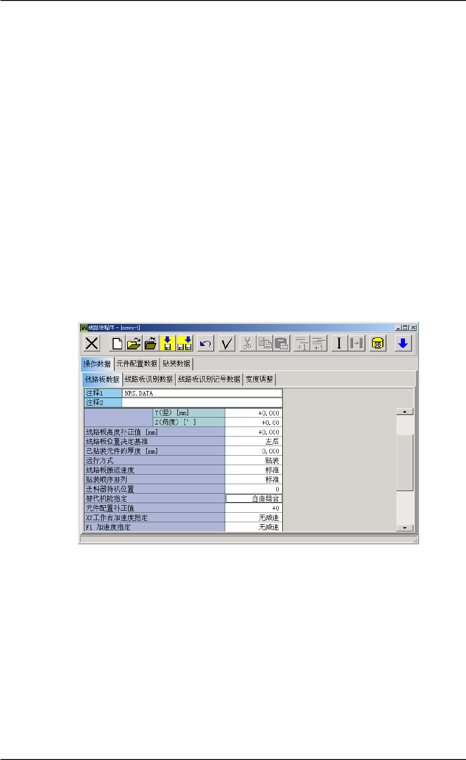 (1) 在线路板程序编辑界面的 “ 操作数据 ” 选项卡中,将 “ 替代机能