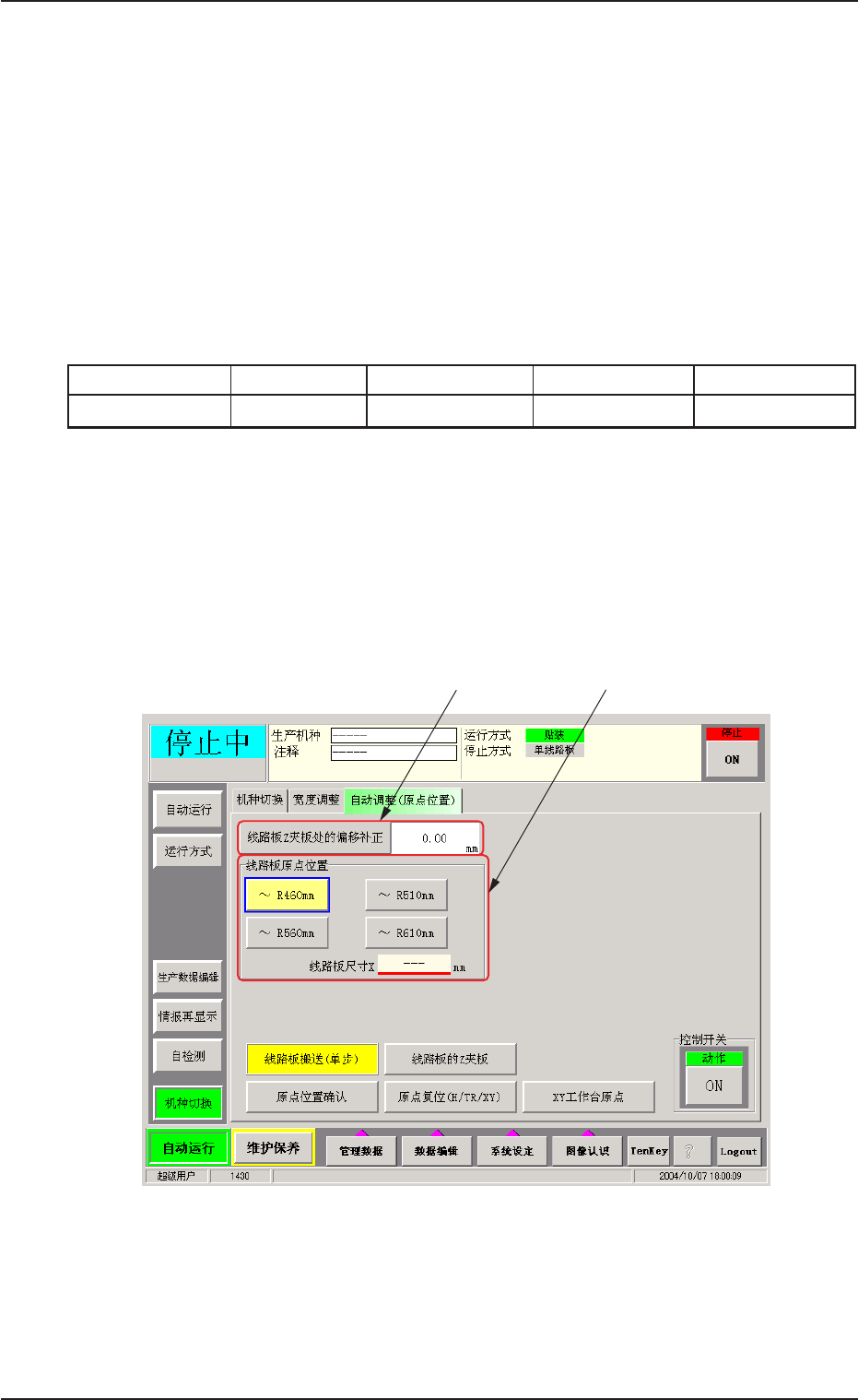 (2) 在 “ 机种切换 ” 子菜单的 “ 自动调整( 原点位置) ” 选项卡中,选