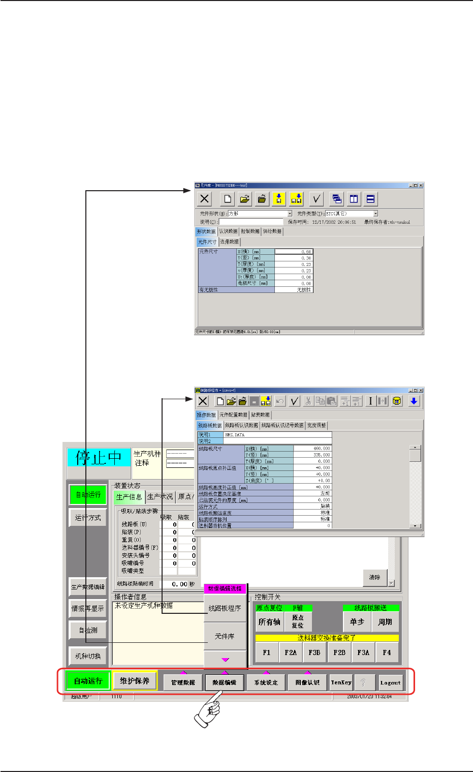 1. 按主菜单栏中的[ 数据编辑] 按钮,便滚动显示 “ 数据编辑选择 ”