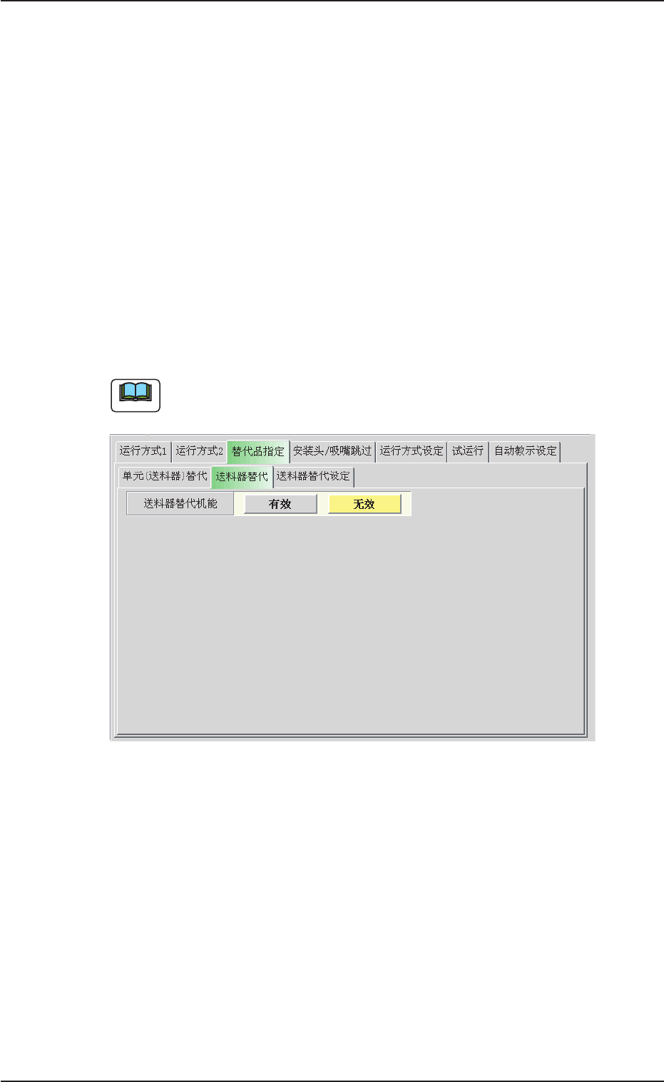 在 “ 替代品指定 ” 选项卡中,按[ 送料器替代设定]Tab,便显示以