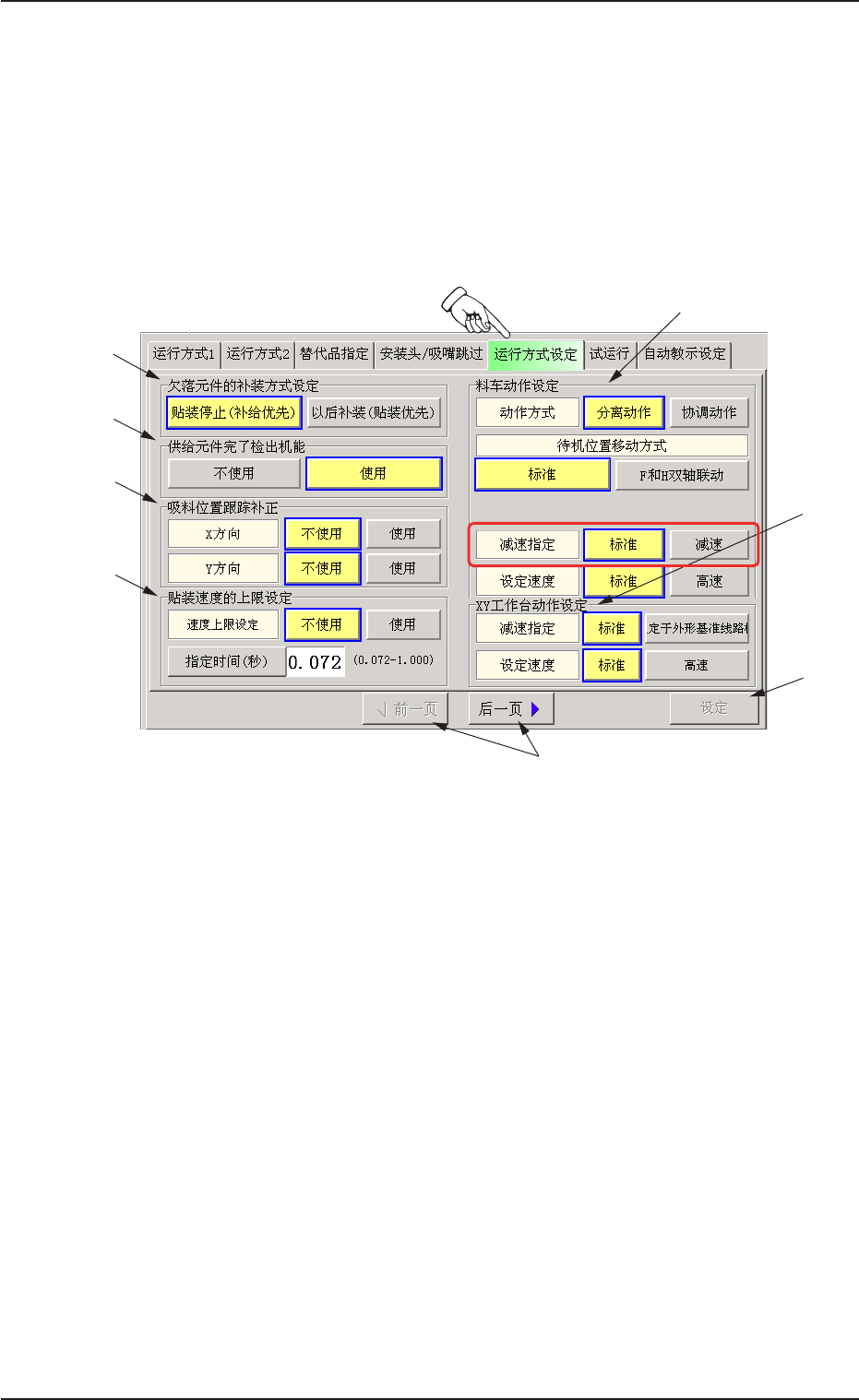 在 “ 运行方式 ” 子菜单界面中,按[ 运行方式设定]Tab,便显示以
