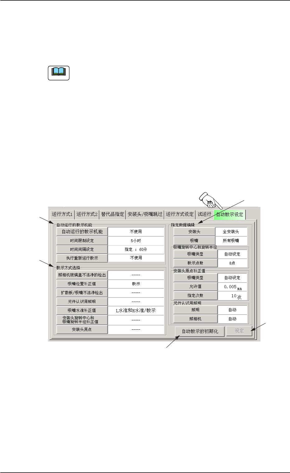 在 “ 运行方式 ” 子菜单界面中,按[ 自动教示设定]Tab,便显示以下