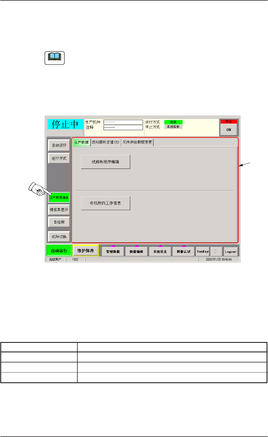 按自动运行子菜单栏中的[ 生产数据编辑] 按钮,便显示以下子
