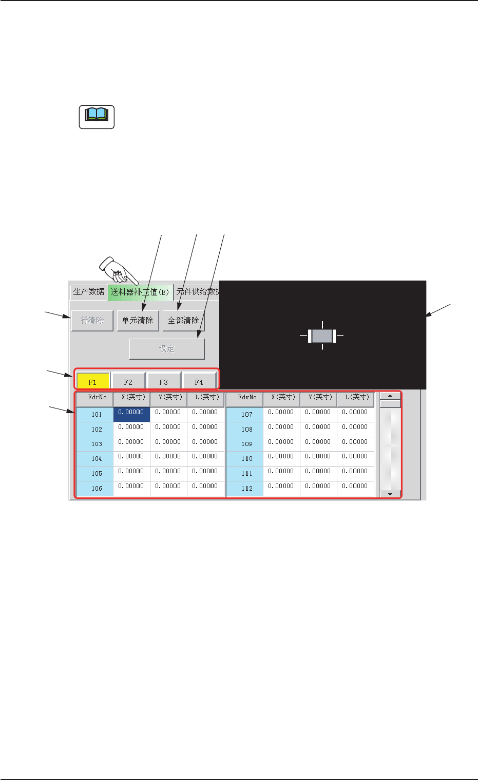 在 “ 生产数据编辑 ” 界面中,按[ 送料器补正值(B)]Tab,便显示